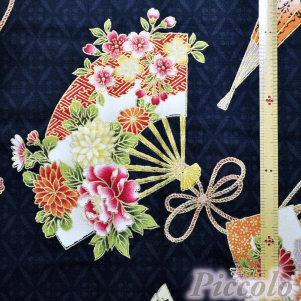 USAコットン qh textiles 扇子 ブラック×ゴールド系 53cm×43cm(カット済) FB-2342
