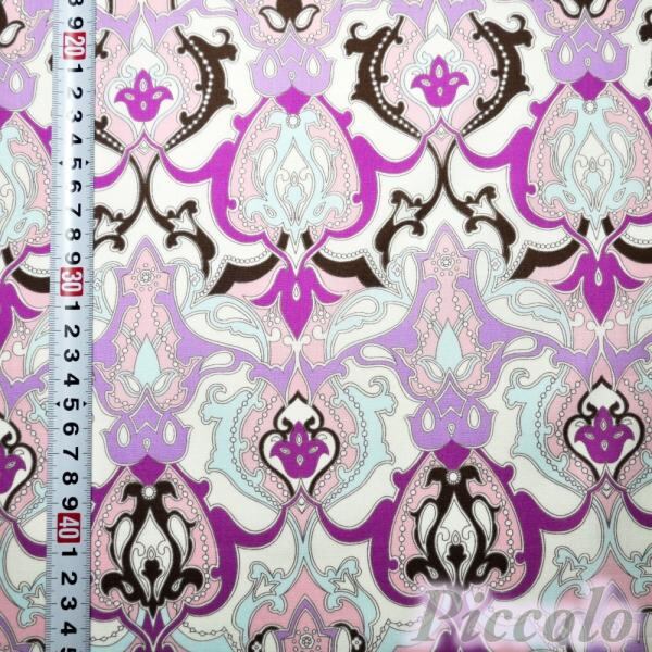 国産生地 模様 パープル系 約53cm×約50cm(カット済) FB-2697
