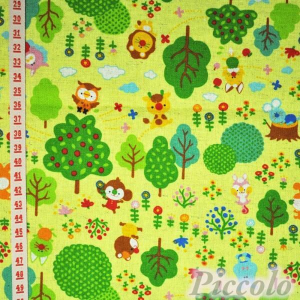 国産生地 動物 アニマル 綿麻生地 グリーン 約53cm×約50cm(カット済) FB-2854